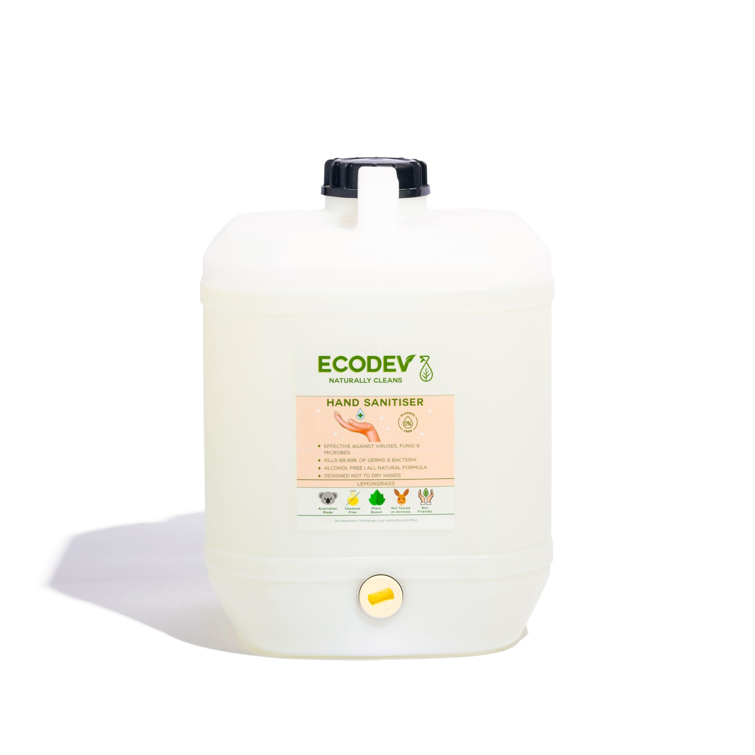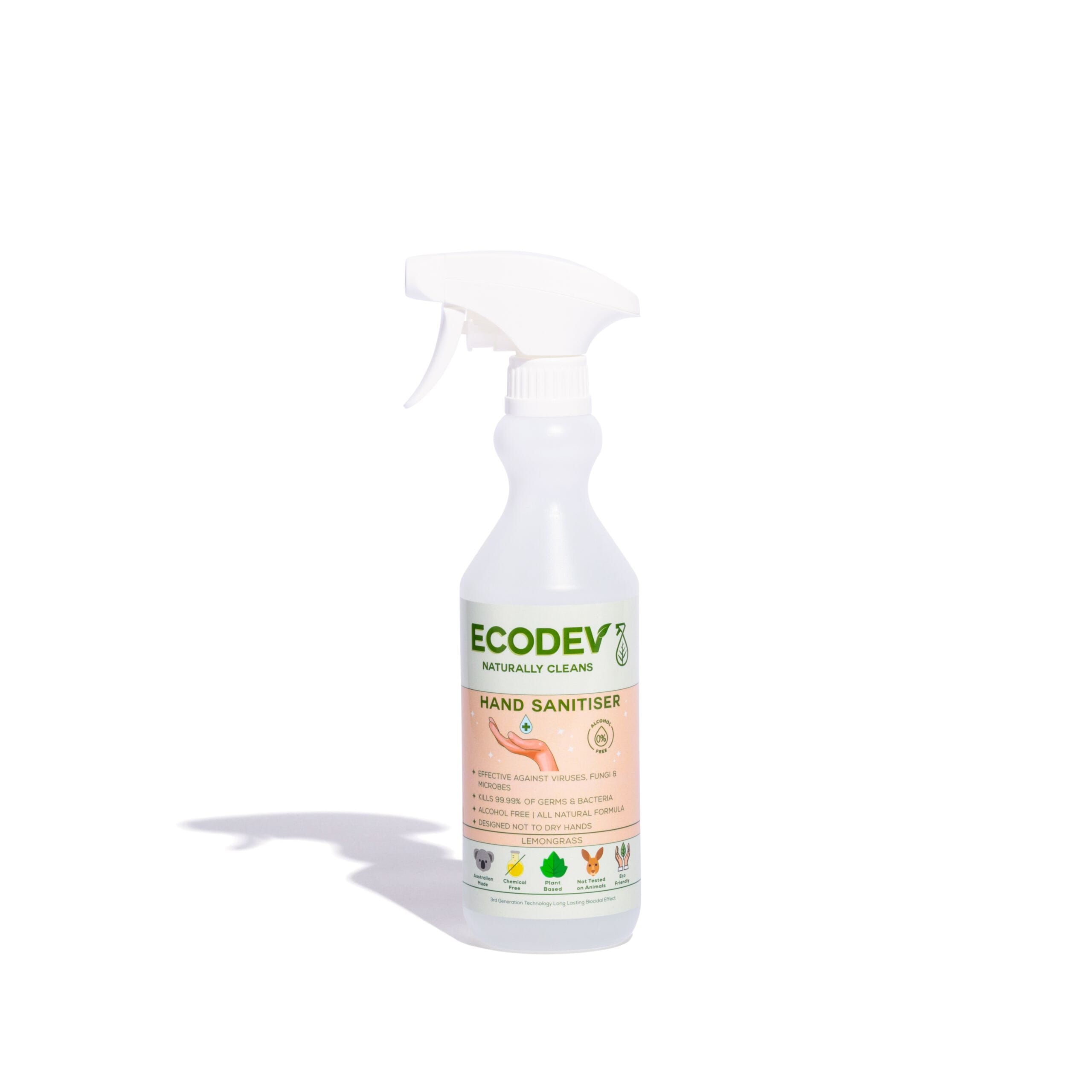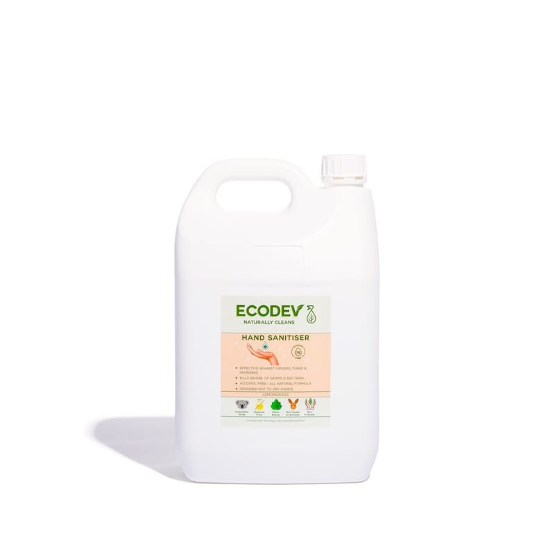Ecodev Hand Sanitiser a high-performance, alcohol-free and non-drying sanitiser made from plant-based ingredients Keeps hands hygienically clean without the harsh effects.